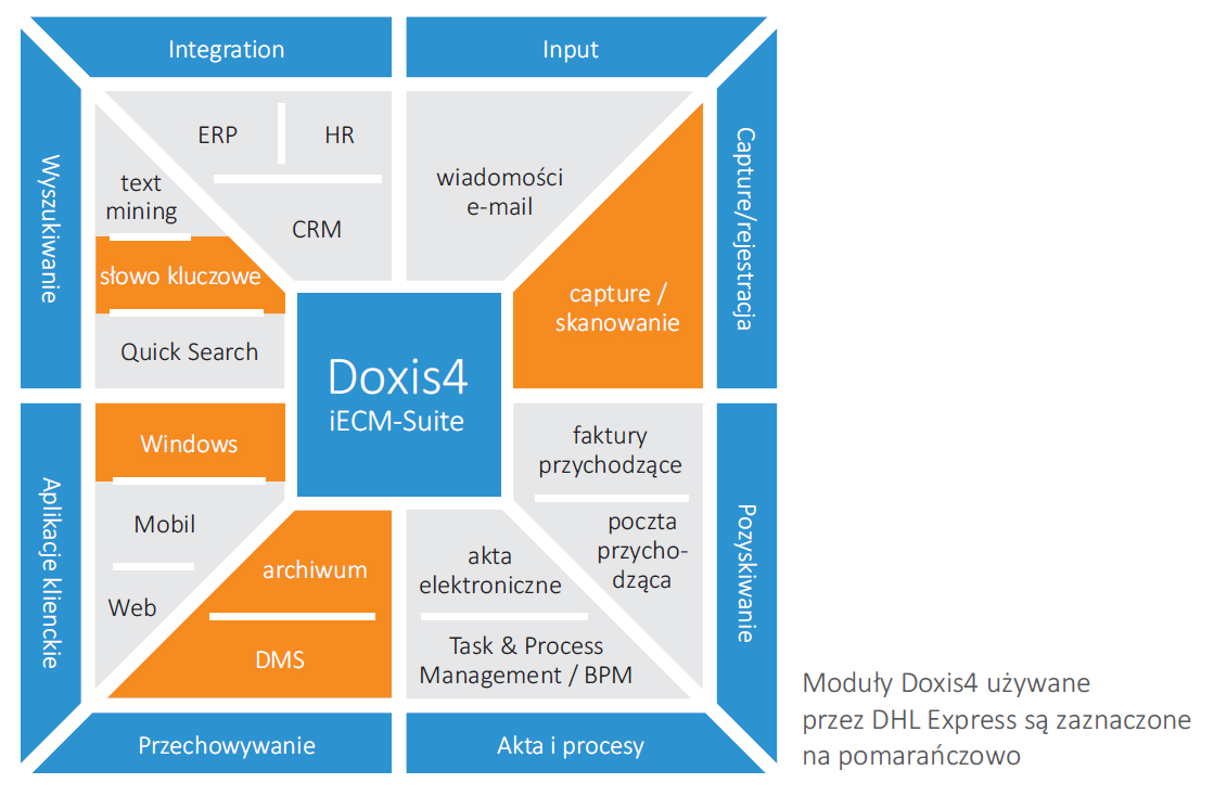 Obecnie w DOXIS4 funkcjonującym w DHL zapisanych jest ponad 7 mld dokumentów, a ta liczba zwiększa się o 5 mln dokumentów dziennie. Aktywnie z rozwiązania korzysta 32 tysiące pracowników DHL, często rozproszonych po całym świecie.